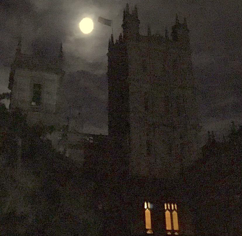 Your photos of Highclere are wonderfully spooky. I especially enjoyed the first one of the castle silhouetted against an orange and black sky, And the one with the full moon makes me want to watch The Wolfman movie with Lon Chaney, Jr.!