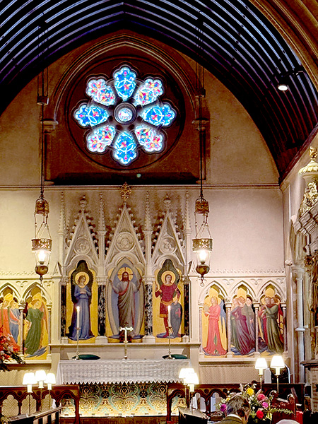 The colours in a church tend to be neutral and soothing: sandy beige walls with darker wooden pews and skirtings grounding the space. The stained glass windows bring colour, beauty and smiles and of course most altars are carefully designed to face east and south, towards Jerusalem. Given many church services are in the morning, we are all looking towards the light.