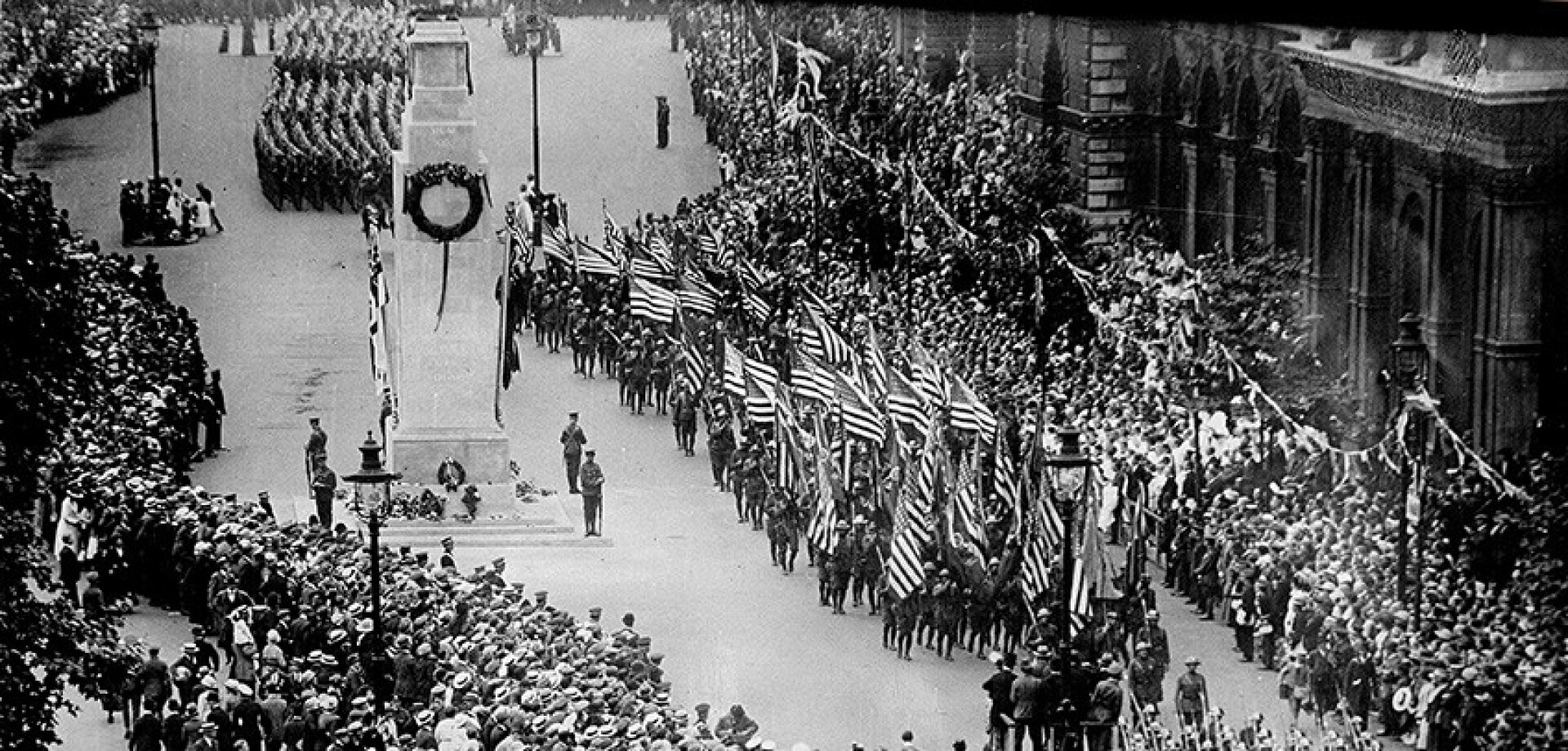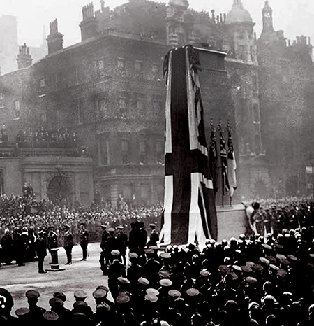 King George V led the procession in a ceremony which both unveiled the Cenotaph and repatriated the body of the Unknown Warrior, an unidentified British serviceman who was to be interred in Westminster Abbey, as a symbolic grave for all those who did not have one.