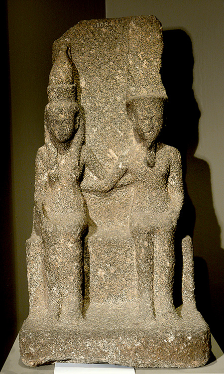 Sitting in the corner of the first room of the Egyptian Exhibition is a large granite statue of Tutankhamun and his wife Ankhesenamun. They are depicted sitting side by side, shoulder to shoulder, arms linked as equals, linked forever as they were once in life, making their way through their everyday family challenges as well as larger matters of state. It is a sculpture of two people and a marriage.